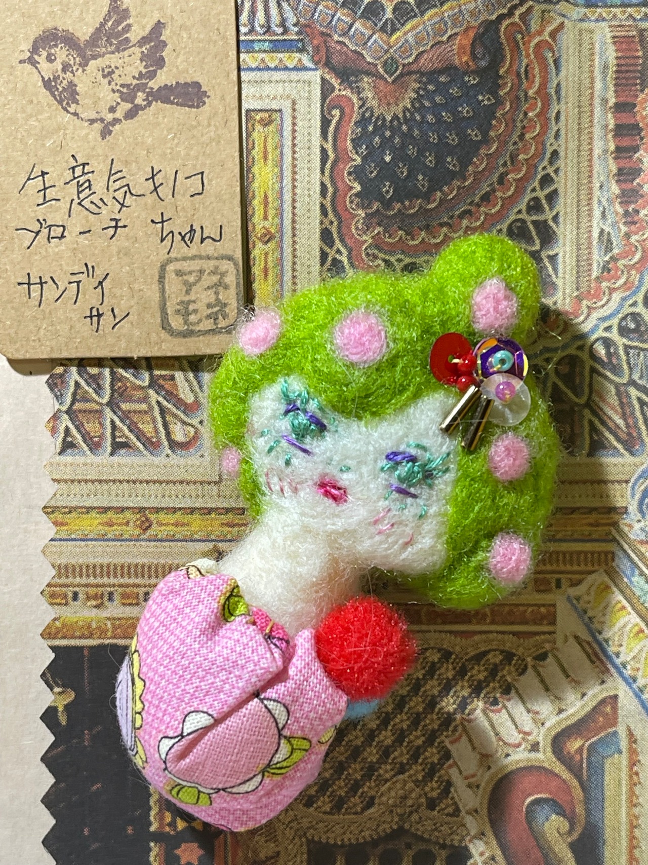 ニードルフェルトとヴィンテージファブリックでチクチク作りました。